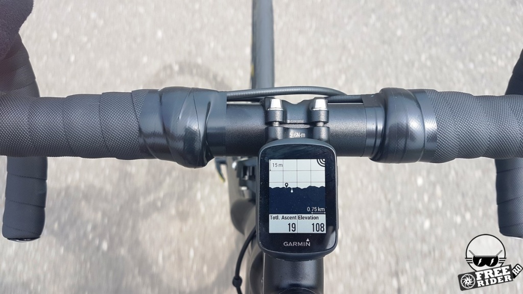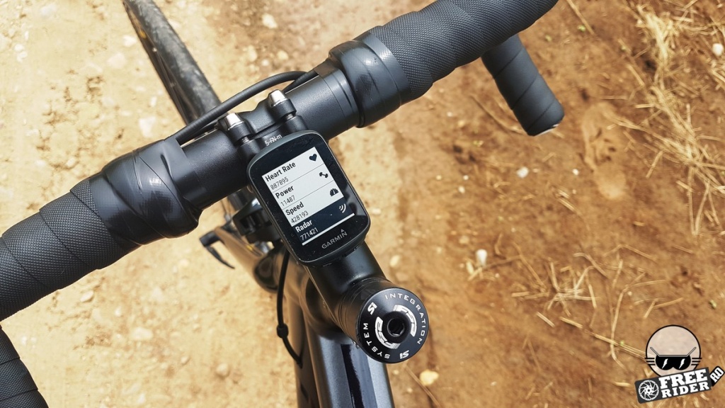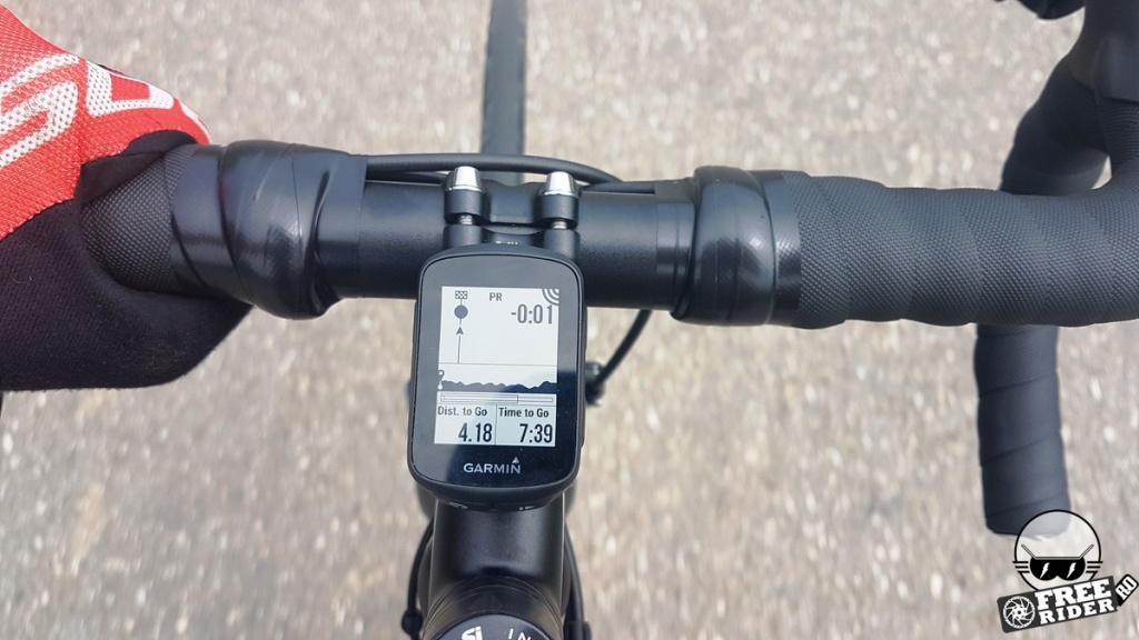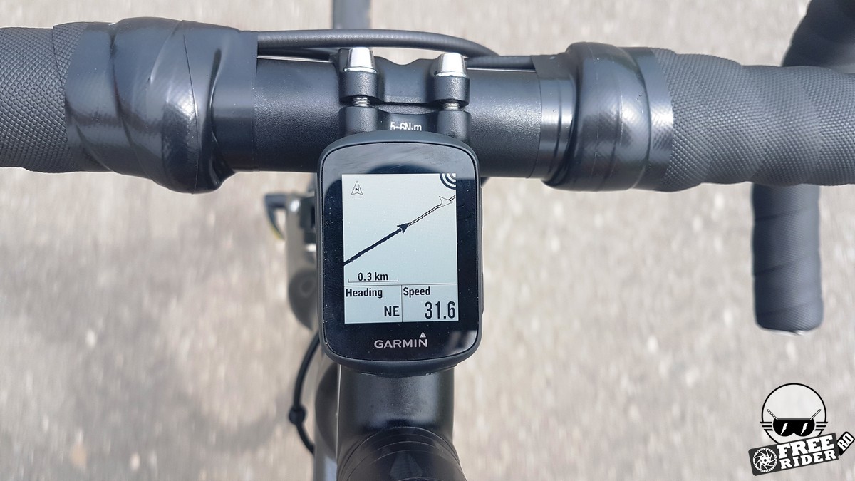 Trecând peste revelația inițială, am ajuns la capitolul funcționalitate, unde am descoperit că în afară de faptul că nu are hărți, micul computer știe o mare parte din lucrurile pe care le fac frații săi mai mari. Ecranul permite afișarea a 8 câmpuri de date simultan (față de 10 la 520). Se pot conecta senzori ANT+ și BTLE, inclusiv senzorul de putere însă fără să știe să afișeze datele complexe de la pedalele Vector privind balansul între picioare. Se conectează de asemenea cu accesorii, respectiv cu Varia Radar (cu care l-am testat și noi), cu luminile inteligente Varia și cu telecomanda Edge, ultima fiind extrem de utilă în special la MTB.