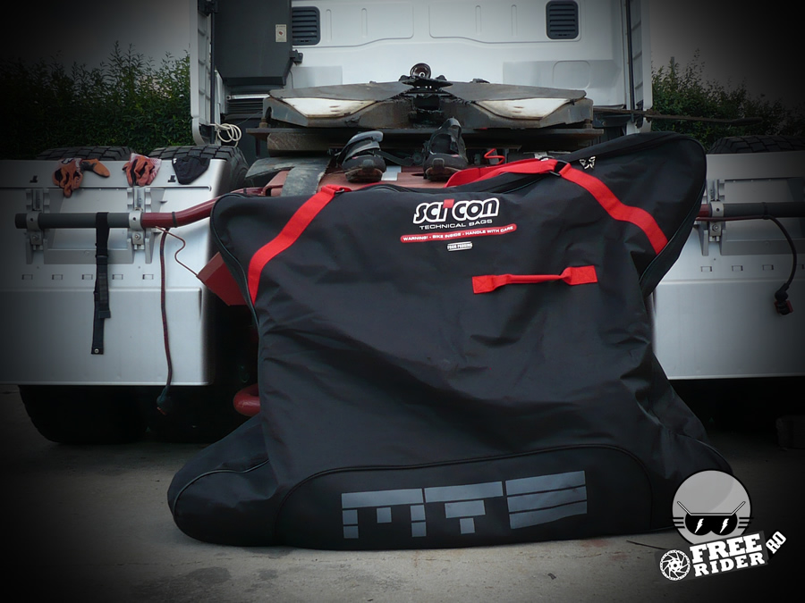 Identificarea unei solutii de transport pentru bicicleta poate fi o problema spinoasa, iar mie acest lucru mi-a dat ceva batai de cap atunci cand am calatorit tocmai pana in Spania, pentru La Rioja Bike Race. Mi s-a sugerat chiar o cutie din carton precum cele in care se livreaza bicicletele, dar cine a incercat sa manipuleze una, stie ca, mai ales in cazul unui 29er, marimea 21’, lupta e pierduta din start. De aceea, m-am bucurat nespus atunci cand am primit prin grija FreeRider o geanta SciCon Travel Plus MTB. Nu doar ca am scapat de o grija apasatoare ci si, judecand dupa cat arata, am inceput sa ma simt ca un rider pro plecat in misiune.