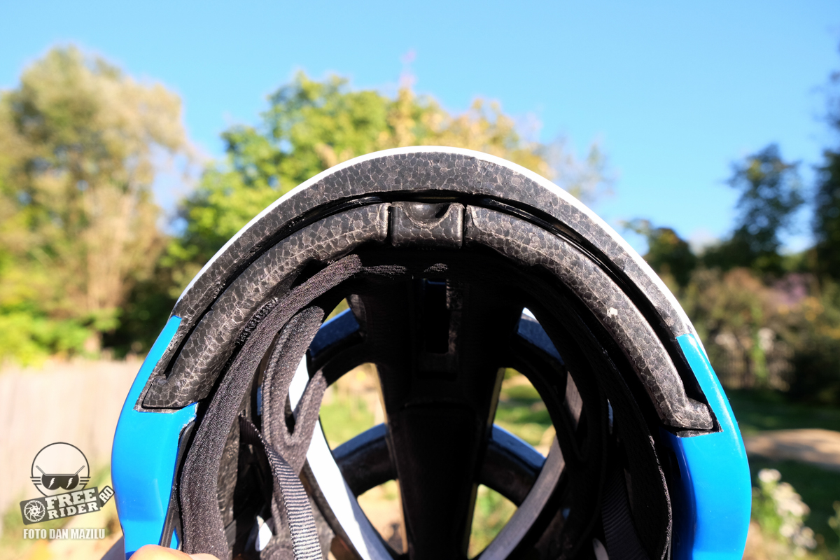Însă chiar și cu acest strat EPS mai gors, casca nu e grea. Am cântărit mărimea S/M la 309 grame. Drept comparație ne putem uita la căștile normale de mtb care cântăresc în jur de 300 g, cele de mtb trail au aproximativ 380 g, iar cele full face pentru mtb au în jur de 770 g.
