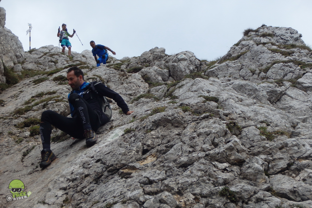 Am plecat spre următorul check poit, iar peisajul s-a schimbat încet de la pădure la gol alpin și stâncărie. Punctul de control era amplasat în Șaua Funduri de unde se vedea foarte bine și următorul punct de pe muntele vecin care trebuia atins: Vârful Păpușa – 2.391m. De aici echipele au avut de coborât din munte până jos de tot în vale. Traseul a fost chiar special, prima parte a coborârii făcându-se pe grohotișul specific al Pietrei Craiului.