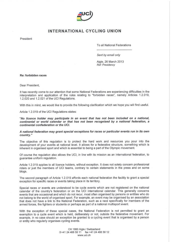 Bineinteles ca accesul la concursuri le trebuie dat tuturor iubitorilor de ciclism, indiferent daca sunt amatori sau profesionisti.