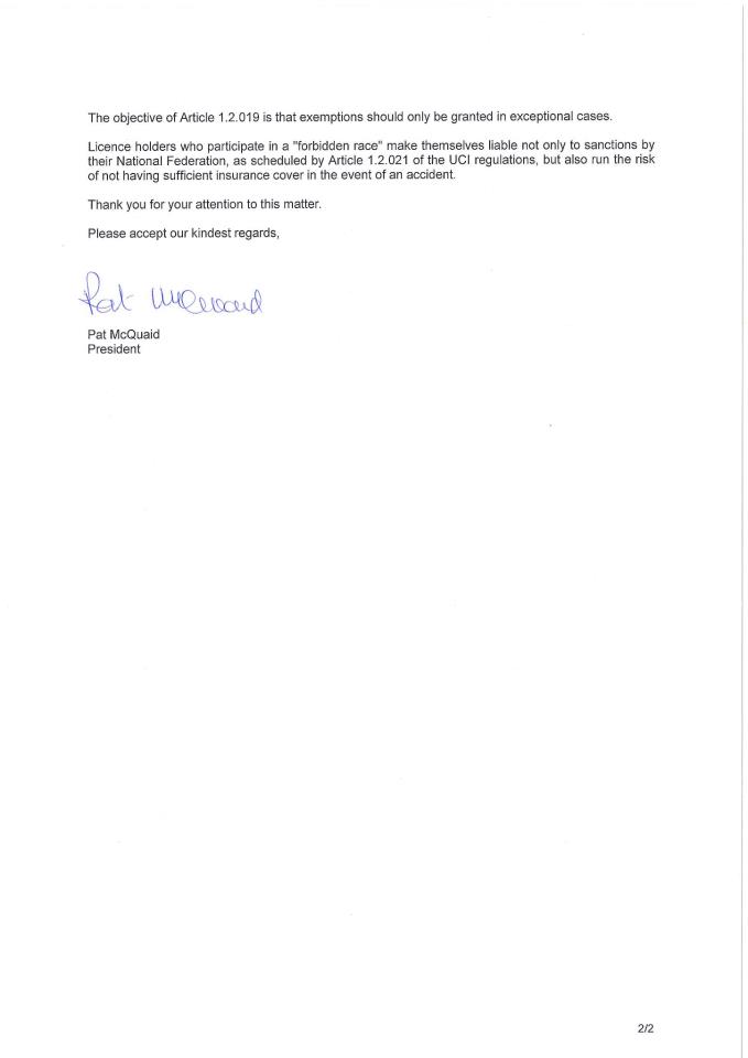 Participarea sportivilor licențiați la cursele private ar trebui permis doar cand la cursele respective sunt categorii speciale pentru elite. Si eu am fost suparat odata pentru ca am ajuns pe locul 4 din cauza ca un sportiv licentiat a castigat la categoria mea….