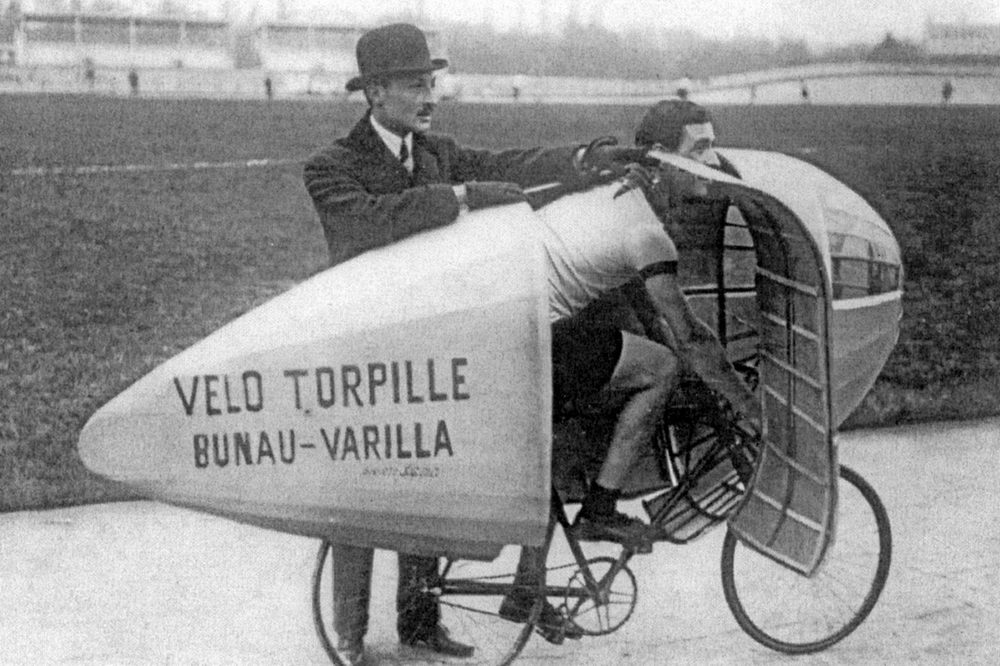 Intitulată Velo Torpila, această bicicletă ce seamănă cu un Zeppelin a fost creată de inginerul Étienne Bunau-Varilla. În 1913 bicicleta i-a permis sportivului francez Marcel Berthet să stabilească un nou record mondial pe pista de la Paris’s Vel’ d’Hiv pedalând cei 5 kilometri în 5 minute şi 39.3 secunde. Asta înseamnă o apreciabilă viteză medie de peste 50 km/h! Însă autoritatea sportivă de la acea vreme s-a grăbit să interzică acest design întrucât oferea un avantaj necinstit. Deşi astăzi nu mai vedem astfel de biciclete, conceptul „aero” este cât se poate de actual şi la modă.