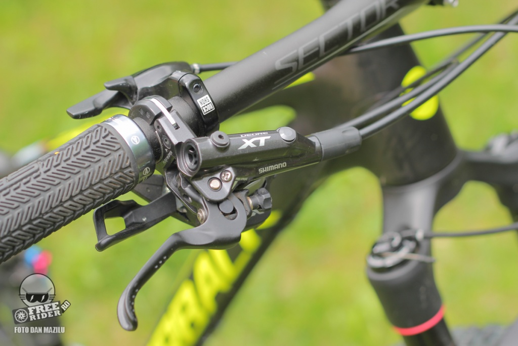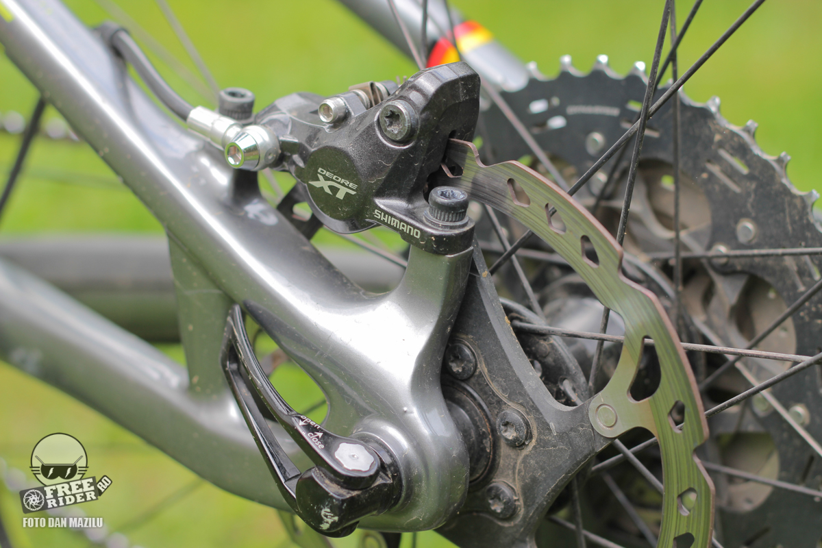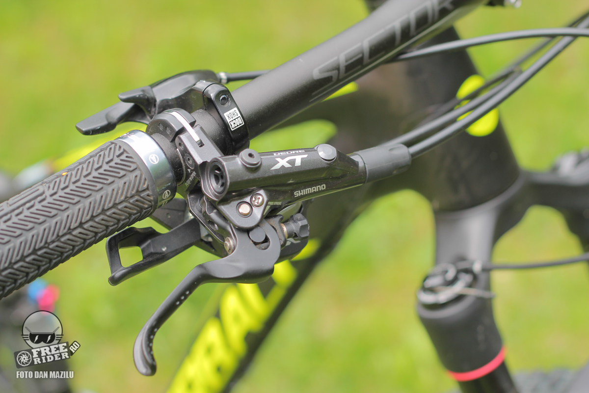 Gropusetul folosit la Sesta Pro este Shimano XT, pe care îl întâlnim cam peste tot. În primul rând la frâne, care dispun de discuri 180 mm față și 160 spate.
