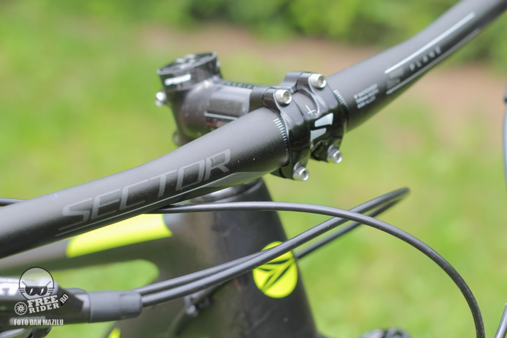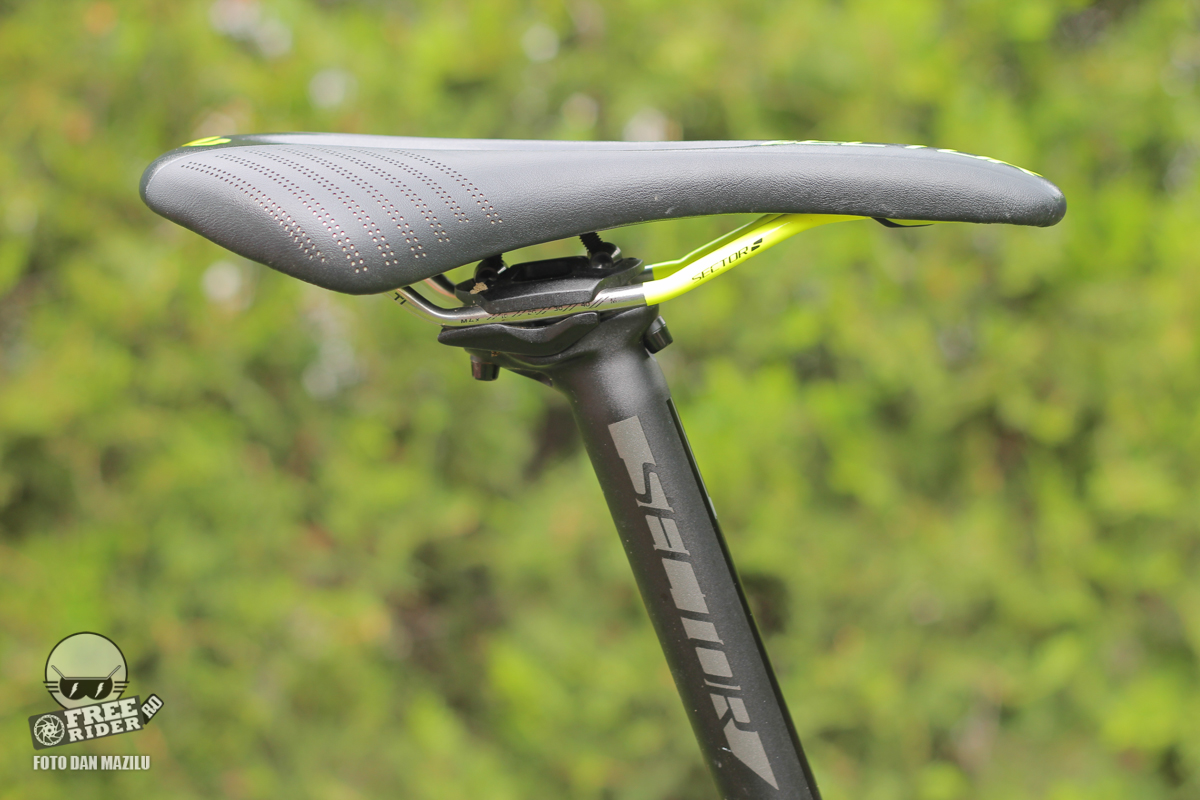 Shifterul de pe ghidon, ca avem doar unul fiind transmisie 1x, este Shimano SLX, desigur compatibil pentru caseta cu 11 pinioane. Cockpit-ul este alcătuit din componente Sector, marcă proprie a celor de la Silverback. Așadar vorbim de pipă, tijă de șa, ghidon și șa.