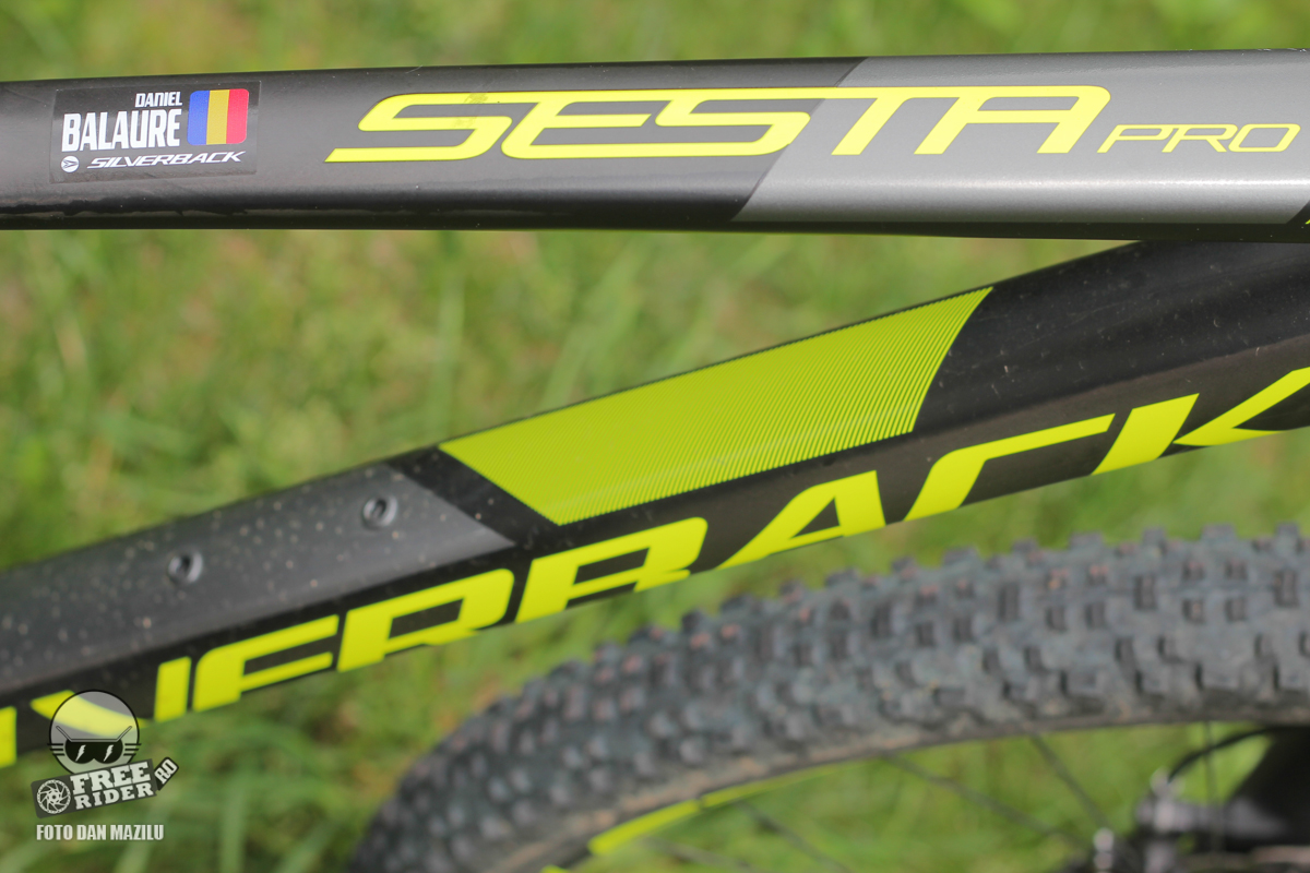 Silverback Sesta Pro este o bicicletă full suspension cu un cadru din carbon și o echipare care îi oferă o greutate de doar 10,77 kg. Suspensiile conferă curse de 100 mm pe față și 90 pe spate, date de furca Rockshox SID RL, respectiv de shock-ul Fox Float DPS. SID-ul poate fi blocat de pe ghidon mulțumită telecomenzii de pe ghidon în timp de shock-ul spate dispune de 3 poziții – blocat, trail și liber, acționate manual.