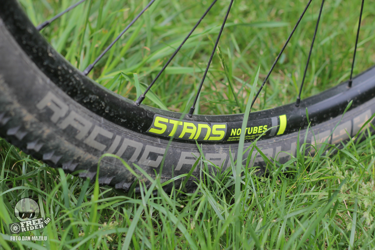 Rotile sunt o combinație între Stans și Schwalbe întrucât jantele și butucii sunt Stans Crest respectiv Stans Neo, iar anvelopele Racing Ralph EVO 29×2.1.