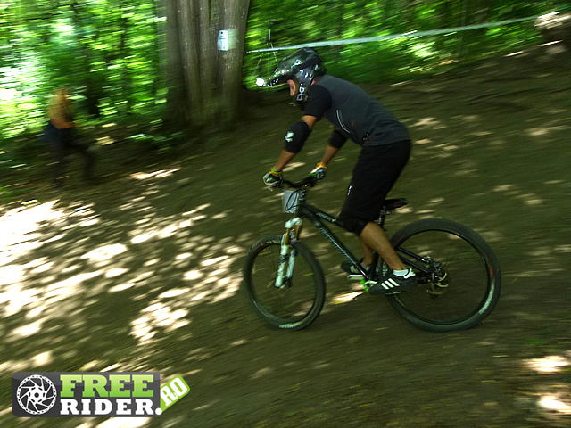 Primul parcurs al traseului nu a fost nicidecum floare la ureche, așa cum mi s-a șoptit, dat fiind faptul că organizatorii au mai schimbat configurația traseului față de anul trecut. De la a doua tură însă, lucrurile au stat mai bine, dar începeam să realizez că o furcă mai mare decât cea de 140 de mm pe care o folosesc, ar fi fost ideală. Ah, și un ghidon ceva mai lat. Nu că acest traseu n-ar putea fi parcurs cu configurația pe care am folosit-o, dar pentru a fi mai rapid și pentru mai multă încredere, trebuie să apelezi la componente pe măsură.