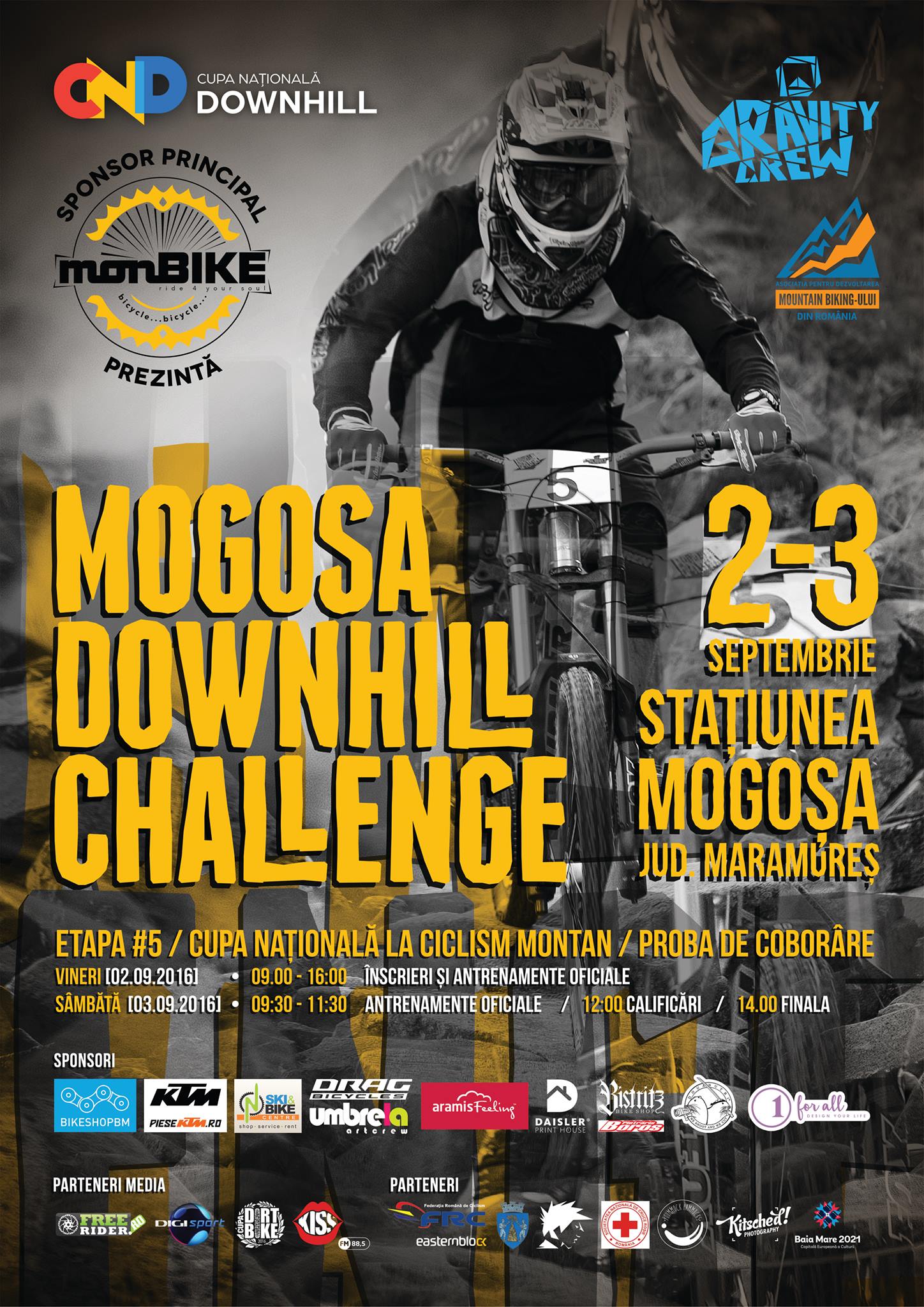 După 2 ani de pauză, Clubul Sportiv Gravity Crew readuce Mogoşa în calendarul competiţional, ca etapa cu numărul 5 din Cupa Naţională de Downhill a României, organizată în colaborare cu Asociaţia Pentru Dezvoltarea Mountainbike-ului în România, sub egida Federaţiei Române de Ciclism. Evenimentul se întinde pe durata a două zile, respectiv vineri 02.09.2016 şi sâmbătă 03.09.2016.