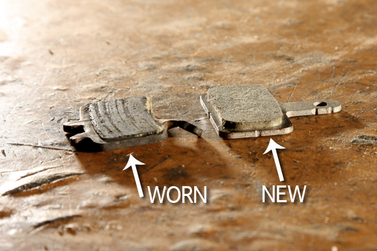 6. Frânele – scoateți roțile afară și verificați starea plăcuțelor de frână, dacă sunt uzate puneți unele noi. Verificați și discurile pentru uzură. Când verificați plăcuțele, cu roata scoasă, apăsați ușor maneta de frână și verificați dacă se mișcă ambele pistonașe, există șansa să se blocheze peste iarnă. Dacă manetele nu funcționează egal sau se apropie de ghidon mai mult decât erați obișnuiți, e posibil să fi apărut aer pe instalație și e nevoie de o aerisire.
