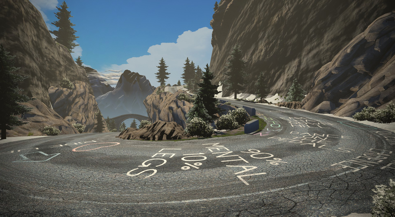 Traseul este deschis doar utilizatorilor Zwift de nivel 12 sau mai mare și include 1036 m de denivelare pozitivă. La fel ca în realitate, panta medie e de 8.5% și include un număr de 21 de serpentine!