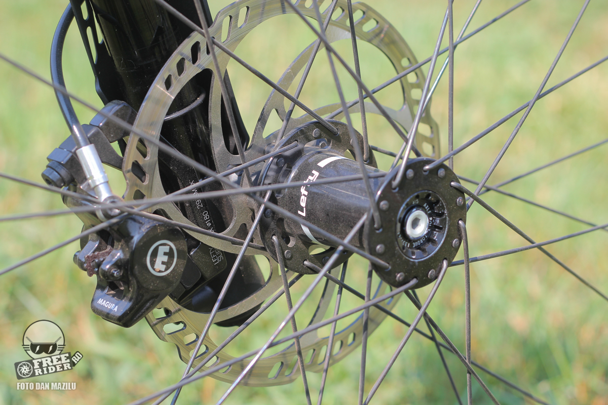 Dacă F-Si se adresează celor pentru care eficiența este cel mai important lucru, Scalpel face treaba la fel de bine, dar cu avantajul suspensiei spate. Furca Lefty știm deja că lucrează foarte bine, suspensia spate fiind și ea destul de eficientă pentru una cu această cursă. Partea frumoasă este posibilitatea blocării ambelor suspensii de la o singură manetă de pe ghidon, ceea ce face posibilă transformarea bicicletei într-una rigidă și invers în doar 2-3 secunde. Lucrul acesta e foarte util pe urcări, unde e de preferat să mergem cu suspensia blocată dacă nu sunt obstacole, însă dacă apar în drum bolovani, rădăcini sau alte denivelări, putem imediat debloca suspensia pentru a trece mai ușor peste ele, urmând apoi să o blocăm la loc. Personal folosesc sistemul acesta și din 10 în 10 secunde pe o urcare mai tehnică, mi se pare foarte bun! În rest, transmisia 1x Deore XT este suficientă pentru o bicicletă de curse iar foaia angrenajului Hollowgram este ca de obicei superbă. Frânele XT opresc bicicleta fără probleme iar roțile Stans Crest cu anvelope Schwalbe își fac treaba exemplar. Scalpel a dat mereu tot ce se poate mai bine în domeniul XC-ului și o face la fel și acum, fără excepție.
