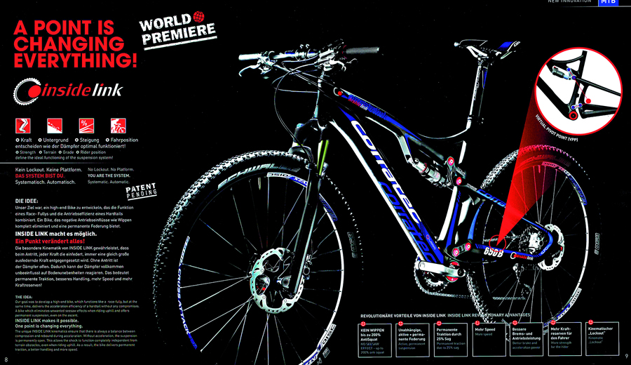 De abia în 2013, cei de la Corratec pun la punct o suspensie care rămâne rigidă în momentul în care pedalezi, denumită Inside Link. Conceptul naște întrebarea: este full-suspension-ul cu Inside Link este de fapt cel mai rapid hardtail? Suspensia este la bază un VPP, însă asigură un echilibru perfect între compresie și revenire în reprizele de accelerație.