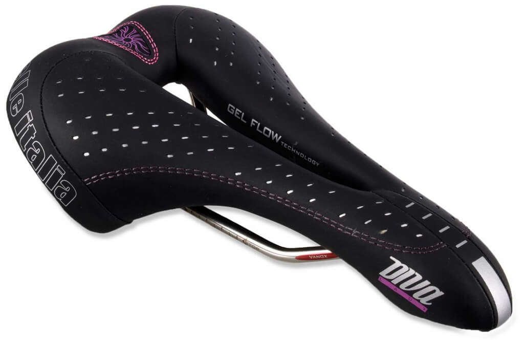 Șaua este un alt element important care este personalizat pe bicicletele feminine de top. Anatomia bazinului feminin e diferită, cu oasele mai depărtate, motiv pentru care producătorii de șei au dezvoltat multe modele specifice, mai late în spate, unele cu canale sau tăieturi pe mijloc pentru a evita compresia zonelor moi.