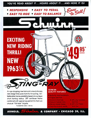 Vizita nu a rămas fără urmări și, în 1963, modelul Schwinn Stingray era introdus pe piață. Bicicleta era atipică în comparație cu restul celor aflate în magazine și s-a bucurat de succes instant. Șaua lungă, ghidonul înalt sau formele vălurie ale cadrului au devenit obiectul adorației copiiilor americani. Prețul era și accesibil, de aproape 50$, în condițiile în care venitul anual al unei familii în acea perioadă era de circa 8.500$. Așadar, se mai născuse un simbol american…