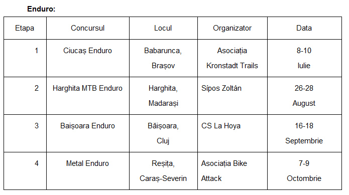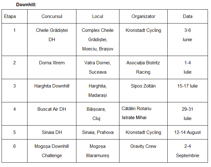 Calendarul competițional pentru disciplinele de Downhill și Enduro arată astfel: