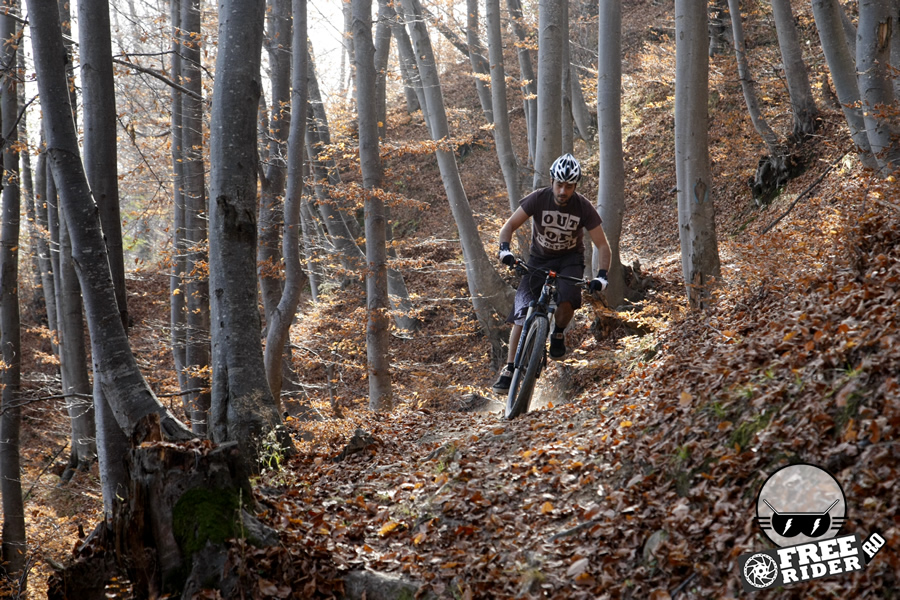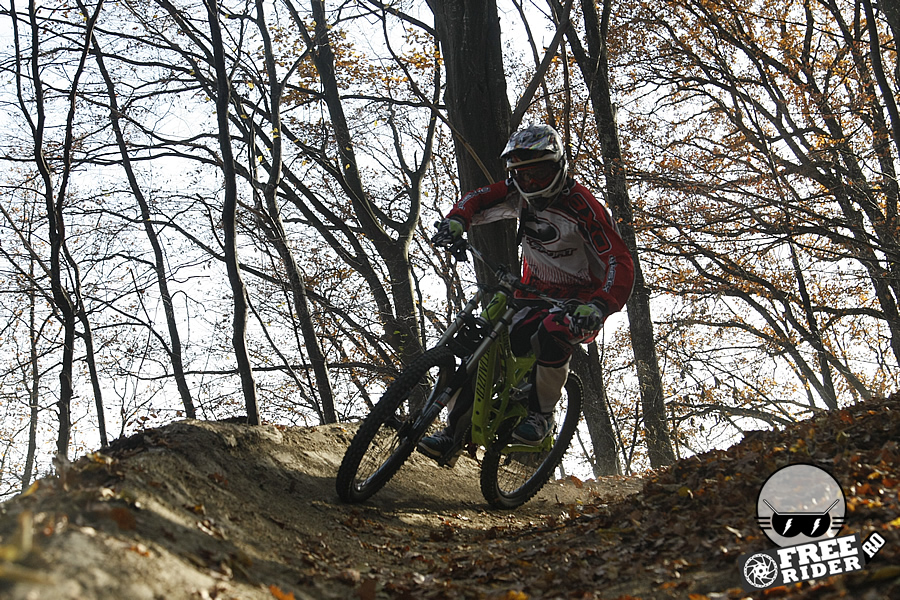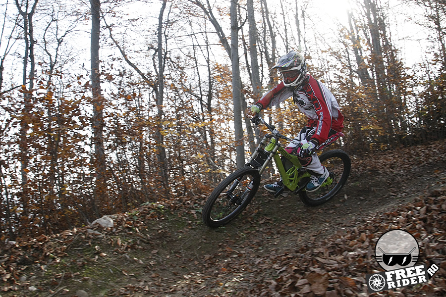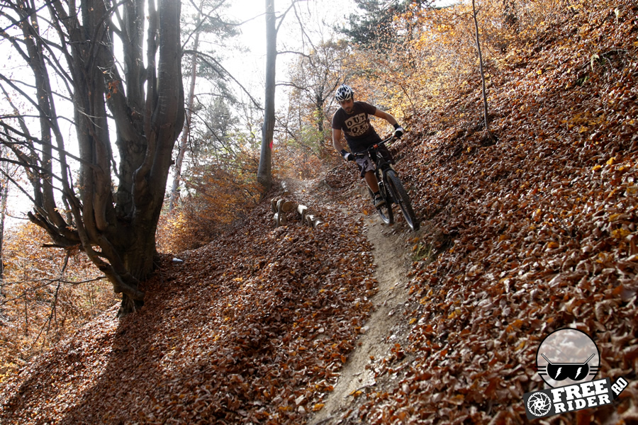 Până atunci însă, o să vă prezentăm unul dintre cele mai spectaculoase trasee, care are punctul de start la 873 de metri și cel de sosire la sub 500 de metri, așadar o diferență de nivel de 373 de metri pe 3 kilometri. Desigur, pentru a urca în vârf trebuie să iei considerare aceeași diferență de nivel, avantajul fiind însă că drumul de urcare este mai accesibil și pietruit, astfel nefiind nevoie să împingi bicicleta pe porțiuni foarte abrupte, printre pietre, drop-uri și rădăcini.