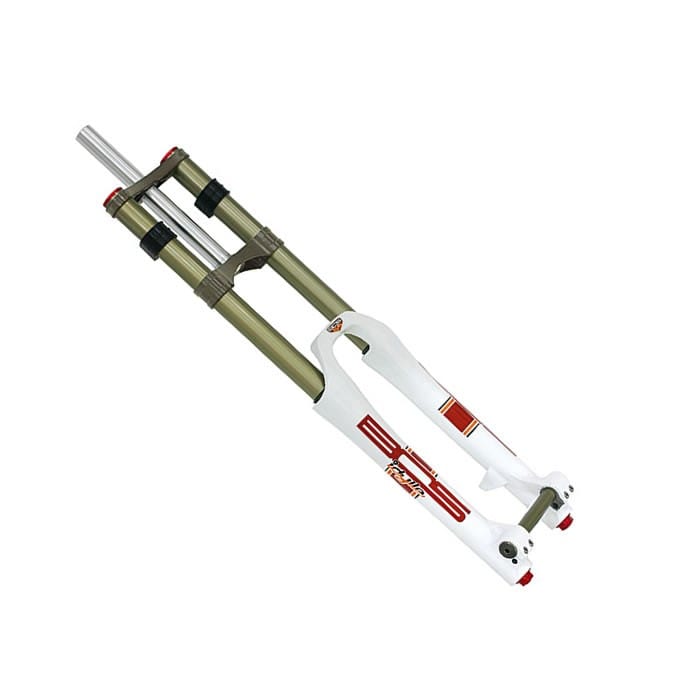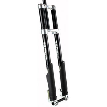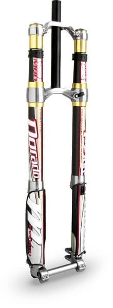 Dimensiunea bratelor furcii este una cu adevarat impunatoare : 40 de mm grosime. Amortizarea se face cu ajutorul unui arc realizat din titaniu si poate inghiti socuri pe o plaja de 203 mm. Beneficiza de numeroase reglaje precum : compresie low si high speed, preload al arcului si rebound. <