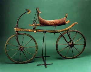 În ciuda aparenței simple, câțiva zeci de ani au trebuit să treacă de la prima invenție cu două roți până la o bicicletă cât de cât asemănătoare cu ce există în zilele noastre. Sfârșitul secolului al 18-lea marchează apariția unui vehicul destinat transportului individual. Contele Mede de Sivrac inventa în 1790 celeriferul (foto stânga). Destul de greoi în folosire, fără un sistem de direcție și frânare și cu propulsia asigurată de picioarele celui care se urcase pe acesta fără a folosi pedalele, celeriferul marcat începutul micșorării distanțelor folosind forța proprie. Nu era ceva revoluționar, dar era mai rapid ca mersul pe jos.