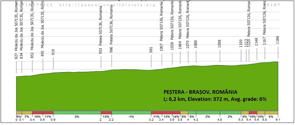 Datorită faptului că ultima porțiune din drum a fost asfaltată de-abia în toamna lui 2016, putem spune că Peștera e una din cele mai ”tinere” cățărări de la noi, deși prima bucată e asfaltată de ceva ani buni. În schimb ce putem spune este că e genul de urcare care te păcălește dacă te uiți doar la parametrii de pe hârtie, ea fiind una dintre cele mai dure urcări din România, deși panta medie e de doar 6%. Acest lucru se datorează faptului că urcarea nu e continuă ci în trepte, între ele fiind bucăți cu pantă destul de mică, ba chiar și puțin negativă pe alocuri. Între ele însă, drumul urcă fioros pe curbele care pun uneori probleme chiar și celor cu MTB!