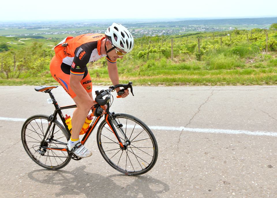 Venea apoi coborârea, unde pot spune că m-am simţit cam la fel ca atunci când am alergat cu motorul pe circuitul de la Serres, în Dunlop Romanian Superbike, atât doar că de data asta purtam doar un strat subţire de plastic pe mine. Am mers “conservator”, iar jos m-am regăsit alături de atenţie, surpriză, bat tobele, colegii de echipă de la KTM Vredestein, Dîrnescu Dorin şi Adrian Popa, pe care am reuşit să-i “corup” să vină şi la şosea. Ne-am strâns un grup destul de mare, am dus trena cu echipa, iar apoi a început jocul cu adevărat! Pe urcarea doi am fost “scuturat” de Cristian Doicescu, care a cam şters-o la deal împreună cu George Stan, dar pot spune că i-am ţinut în vizor pe porţiunea valonată, unde se putea merge foarte … motociclistic. Următoarea tură prin câmpie, grupul nostru a pierdut din oameni şi din… inţiativă, reuşind şi să-i pierdem în zare pe cei doi. În ultimul tur am intrat împreună cu Andrei Stanciu, Adrian Sava, Gheorghe Liviu –un rider cu care mă întâlneam acum câţiva ani pe la cursele de enduro şi care a parcus Transalpina şi Transfăgăraşanul în 24 de ore, pe bicicletă, cu noi fiind şi Cristian Marin şi Alexandru Pulpă. A fost frumos, am colaborat ca nişte domni, iar pe urcare, ne-am lăsat purtaţi de val, fiecare cum a ştiut mai bine. Am reuşit să găsesc feeling-ul pe care îl căutam în prima tură, am fost fără milă cu KTM-ul pe micile porţiuni fără asfalt, că doar are gene de off-road şi am încheiat pe locul patru în categorie. Aici pot spune că m-a ajutat sesiunea de antrenament în care am dat patru urcări pe Seciu, pentru că organismul meu ştia la ce să se aştepte, iar eu ştiam că dacă a mers la antrenamente va merge şi în cursă! Nu insist pe încheiere, pentru că în Road Grand Tour, distracţia de abia a început!