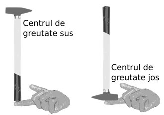 R: Echilibrul poate fi tinut mai greu decat la bicicletele traditionale. La ciclofotoliu centrul de greutate se afla mai jos. Cea mai simpla explicatie este exemplul ciocanului tinut in echilibru pe deget. Incearca si tu: