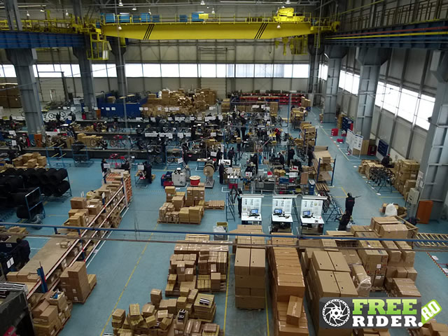 Există 3 linii de producție, fiecare împărțită la rândul său în 4 secții care asamblează roțile, prefabricatele, reglează toate sistemele bicicletei și, în final, le împachetează pentru a fi trimise spre departamentul de logistică.