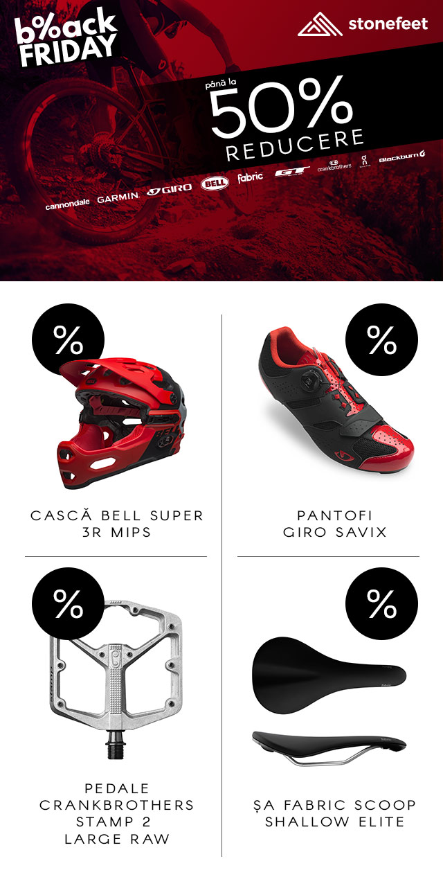 Giant Romania va oferi reduceri de până la 50% la biciclete, echipamente pentru bicicletă şi accesorii. Mărcile care vor face parte din ofertă sunt: Giant, Liv, Mavic, Tacx, Saris inclusiv gama 2019. Oferta va fi valabilă în limita stocului disponibil atât online, cât şi în magazinul din strada Traian 98, Bucureşti, deschis în fiecare zi de la 10 la 19, inclusiv sâmbătă, 16 noiembrie, până la ora 17:00. Perioada promoţiilor este activă între 11 şi 17 noiembrie.