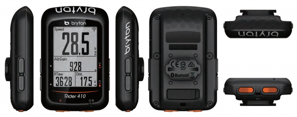 Rider 410 este primul computer de la Bryton ce dispune de support total GNSS (adică GPS, Glonass, BDS, Galileo și QZSS). Ecranul alb/negru are diagonala de 2,3 inch (la fel ca Garmin 510). Protocoalele de comunicare cu senzorii sunt ANT+ și BLE, așadar va funcționa cu orice senzori care dispun de oricare din cele două protocoale. Rider 410 este compatibil cu Strava, Training Peaks, Golden Cheetah, Selfloops plus altele.