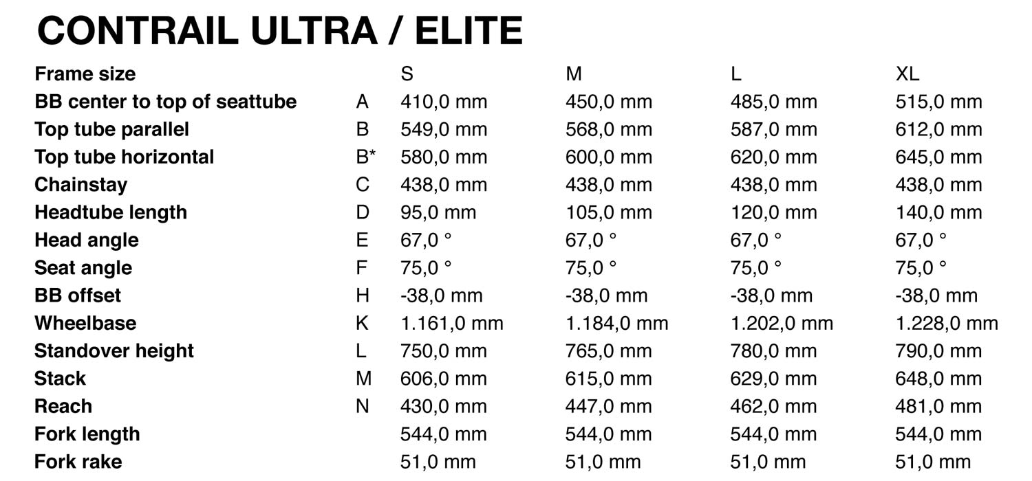Noul model din carbon e disponibil în două echipări, folosind același cadru. Modelul Bergamont Contrail Ultra are un preț de 6000 Euro, o transmisie SRAM X01 Eagle cu angrenaj din carbon, furcă RockShox Pike RCT și amortizor Fox Float, frâne SRAM Level TLM, dropper Manitou Jack și roți DT Swiss XM1501, greutatea totală anunțată fiind de 12.4 kg.