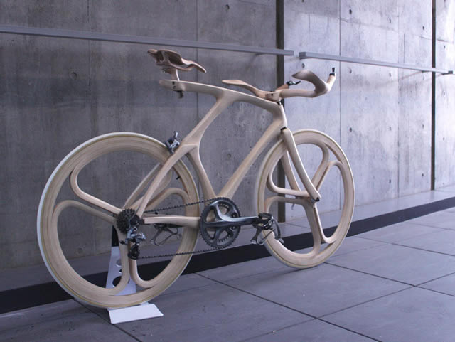 Biciclete din lemn am tot văzut în ultima perioadă, semn că din ce în ce mai mulți designeri își încearcă talentul în a crea mai mult sau mai puțin opere de artă. Creației lui Yojiro Oshima îi poate fi atribuit cu ușurință acest titlu.