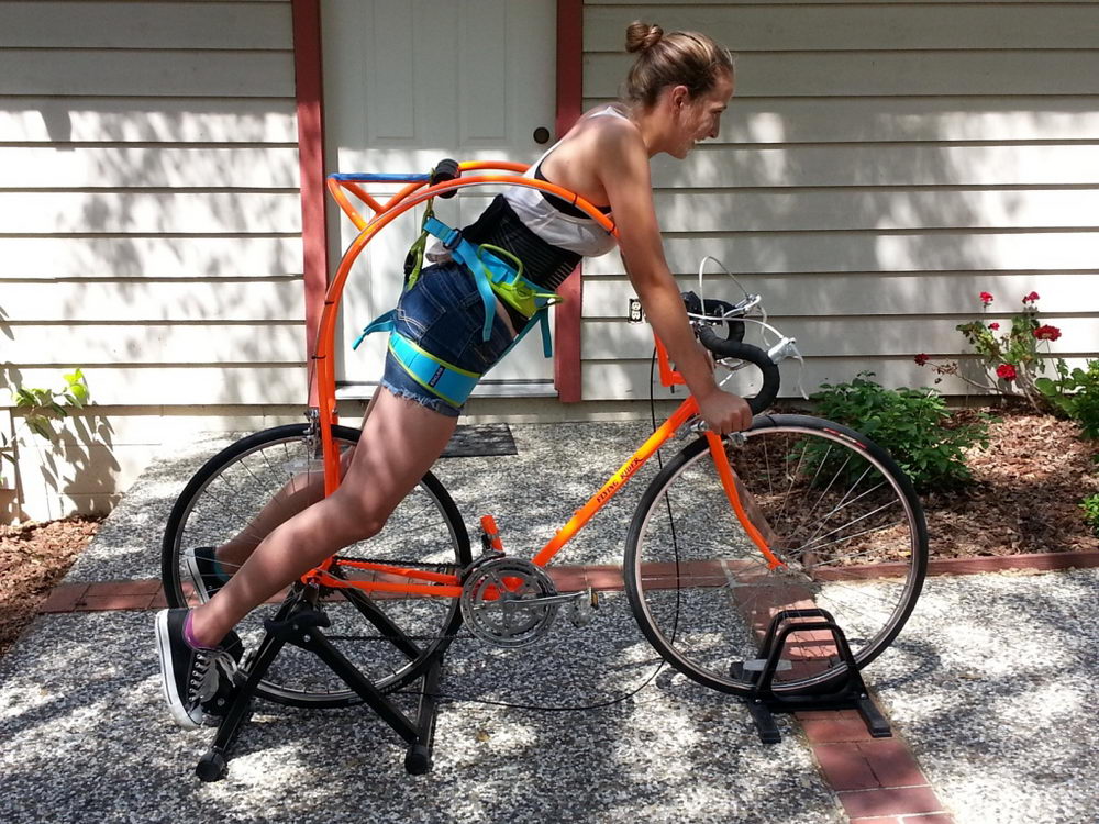 Inventatorul spune însă că a gândit acest sistem din alte motive decât ai crede la început. În loc să dorească să elimine durerile cauzate de şa el s-a gândit că dacă cicliştii ar avea un suport de care să se sprijine cu spatele în timp ce pedalează ei ar deveni mai eficienţi. Rezultatul s-a materializat printr-un cadru în mijlocul căreia biciclistul este suspendat cu un ham.