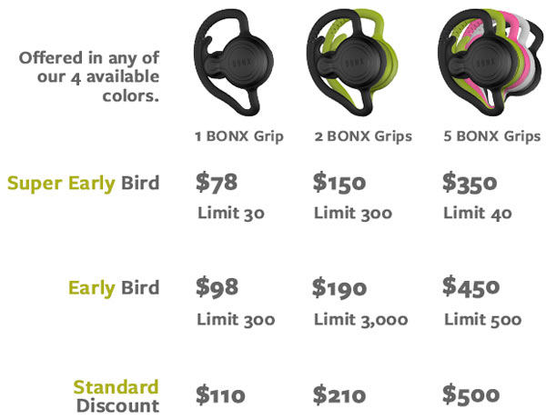 BONX a avut o campanie de succes în Japonia, unde deja a expediat produsele funcționale iar acum se lansează din nou prin Indiegogo, cu livrări estimate în această toamnă. Prețul după terminarea campaniei va fi de 139 USD bucata.