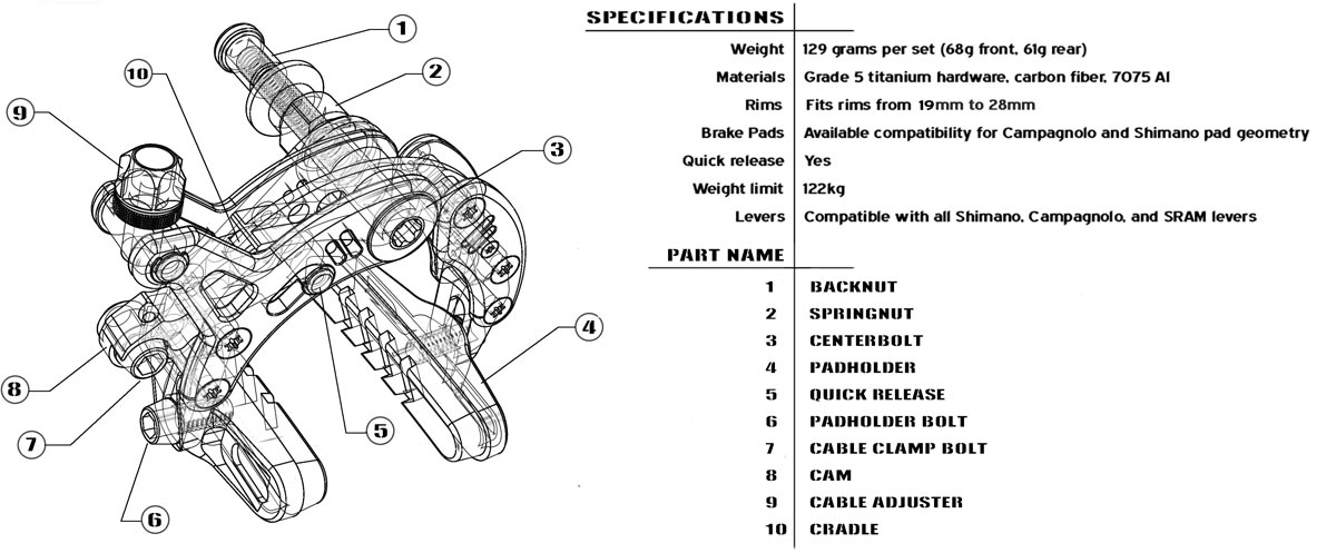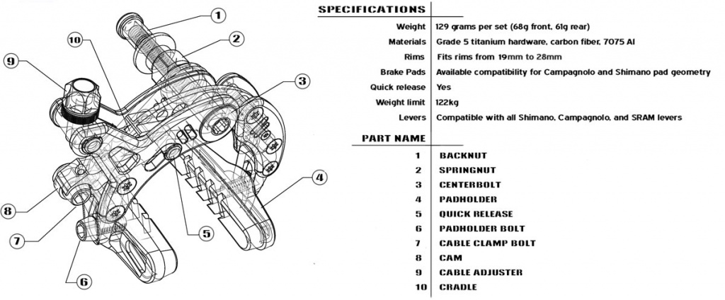 Noutatea constă în trecerea la un corp al frânei din carbon. Dacă modelele anterioare aveau o greutate de 155 g cu corpul din aluminiu prelucrat, acestea noi folosesc plăci de carbon pe ambele părți ale unei came din aluminiu, totul fiind conectat cu un mix de piese din titan, aluminiu și inox.