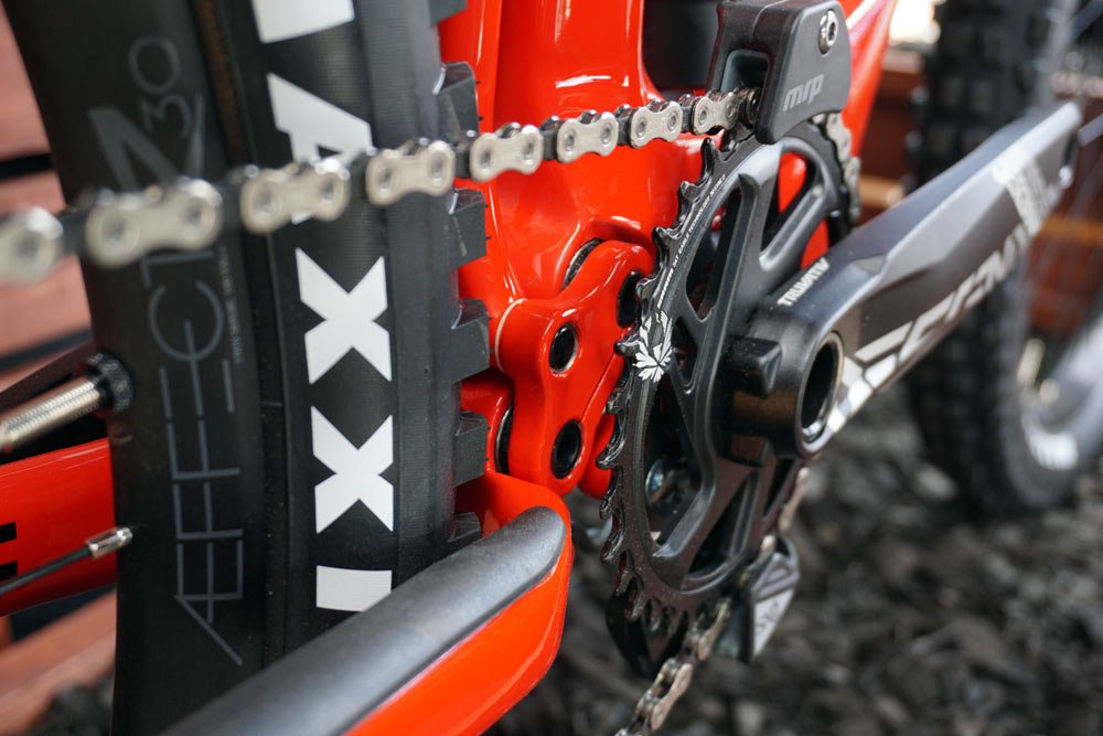 Toate piesele sunt acum din carbon: brațe, triunghiul spate și față, doar șuruburile nu sunt idn carbon. Cadrul are chip-ul flip de pe Decree, dar cu un reglaj mediu adăugat. Acesta permite coborârea monoblocului cu 10 mm și micșorarea unghiului furcii cu 1 grad până la 63 de grade.