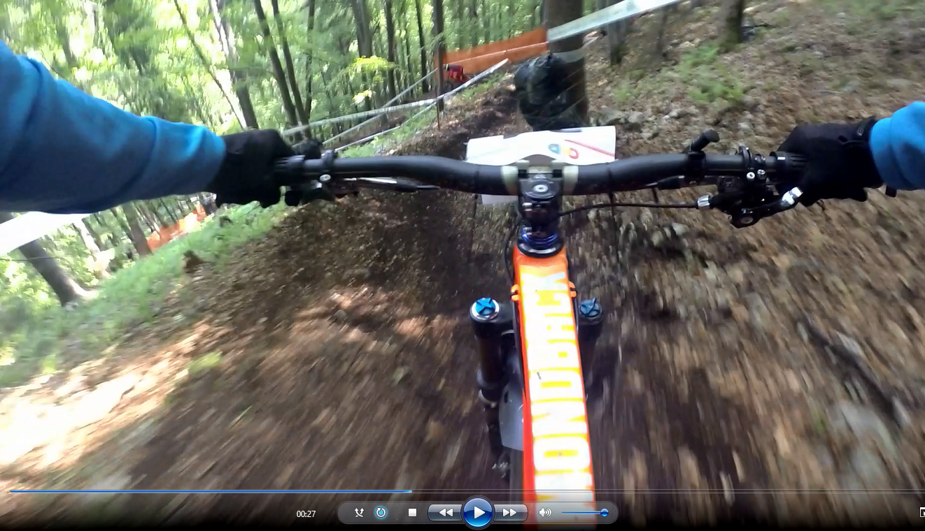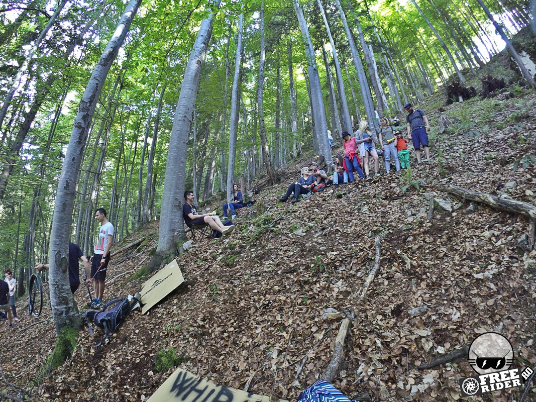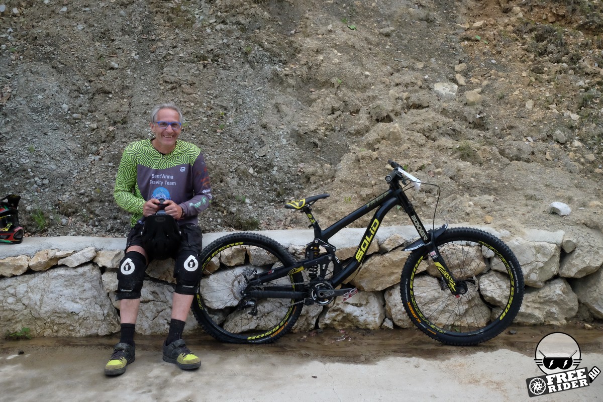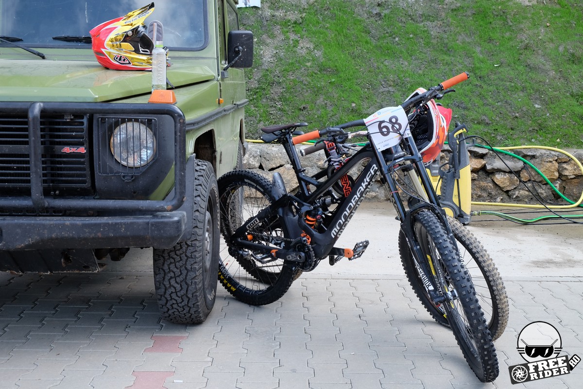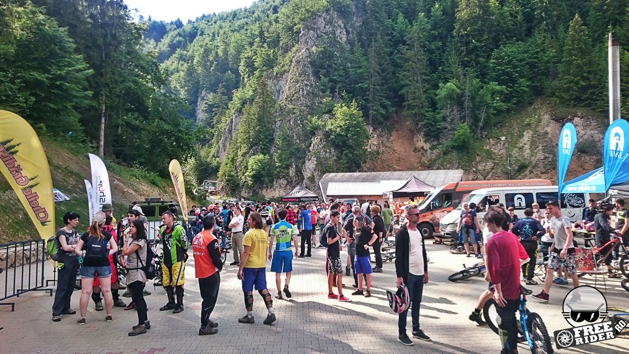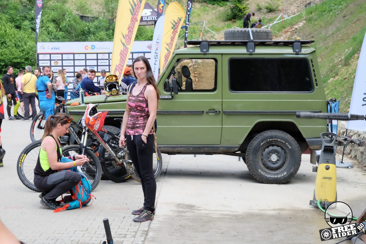 Revenind la concurs, ziua de sâmbătă a fost dedicată antrenamentelor, iar cele 6 ture pe care le-am dat m-au ajutat să mă familiarizez cu noul traseu. Nu a fost vorba despre unul radical schimbat, însă a fost mai lat, mai tehnic și mult mai intens. În cei 1.4 kilometri de coborâre nu aveai timp să respiri, nici să te odihnești, căci lucrurile se defășurau de regulă în această ordine: pietre, rădăcini, săritură, contrapantă, off-camber, wall-ride, pietre, praguri, drop, contrapantă, pietre mai mari, viraj strâns, viraj foarte strâns, duble, sărituri și tot așa. Înțelegeți voi. Deja după a 5a tură mă simțeam destul de epuizat, conștient fiind la rându-mi că downhill-ul nu este disciplina mea forte și nici una pentru care să mă antrenez consecvent. Dar dacă eu, în calitate de amator, pot să parcurg acest traseu, însemnă că-s mai mulți care pot încerca măcar o dată această experiență. Pentru că downhill-ul nu trebuie subestimat: pe cât de dificil, pe atât de dependent devii de el. Și chiar rapid.