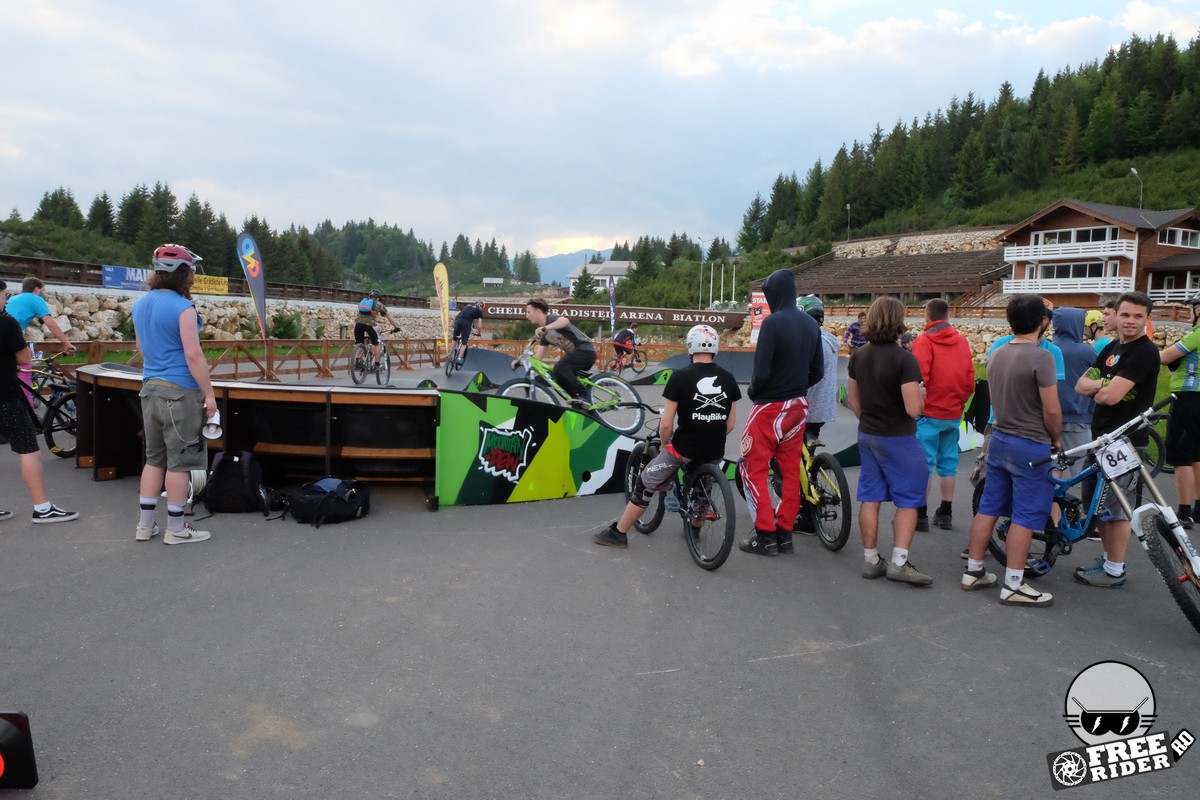 Sâmbătă seara distracția a continuat la pumptrack-ul de la Cheile Grădiștei, acolo unde Maximilian Munteanu a încroprit un side event de zile mari doar cu ajutorul unei portavoci și a talentului său incontestabil de maestru de ceremonii. Câțiva zeci de rideri au tras un pic de ei pentru a scoate un timp onest pe pumptrack, apoi s-au străduit să tragă de bicicletă cât mai sus, la concursul de bunny-hop. Radu Vasile a reușit cel mai bun timp pe pumptrack, sub 7 secunde, iar Akos, ne-a impresionat pe toți cu un bunny-hop peste o bară din plastic amplasată la o înălțime de 1 metru. Say what? Așa cum i-am și transmis, în ritmul ăsta ar putea să evite oricând un copil de până-n 3 ani prin parc, pur și simplu sărind peste el…