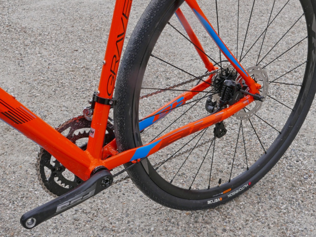 Gravel X folosește soluții simple cum ar fi rutare externă pe chainstay și ax de 12 mm la ambele roți