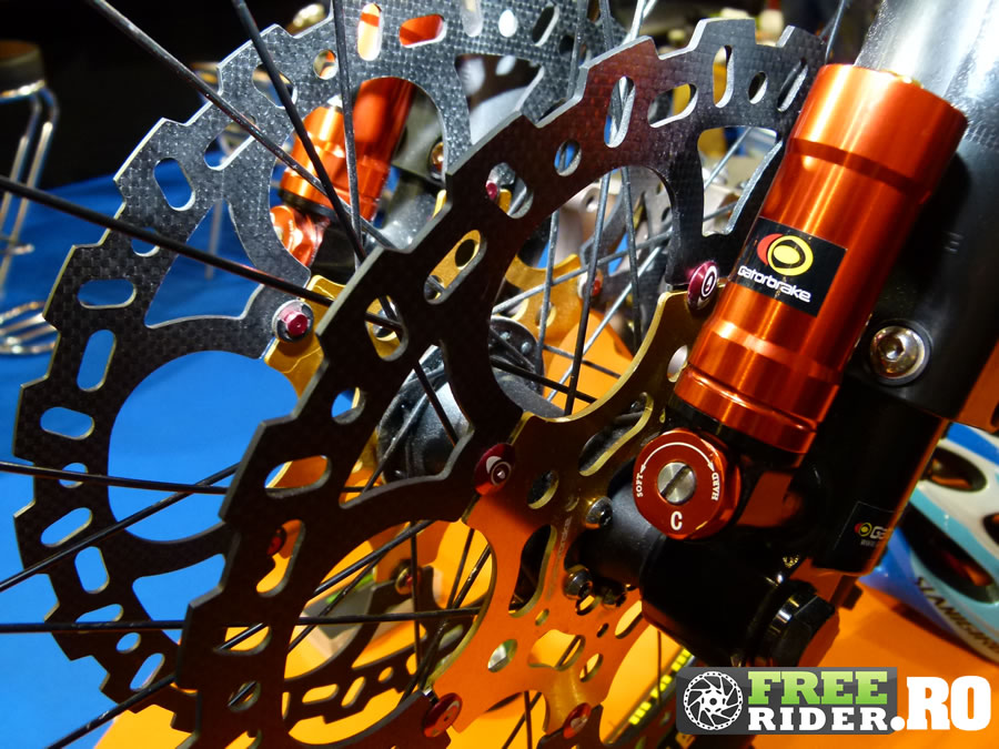 GatorBrake a prezentat în cadrul EuroBike 2011, poate cea mai controversată și puternică frână din lume, după cum însuși reprezentanții companiei susțin. Discurile din carbon sunt doar o parte (ce-i drept importantă) a specificațiilor. Puterea de acționare a plăcuțelor pe disc, este furnizată de cele nu mai puțin de 8 pistoane din etrier.