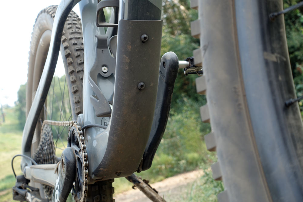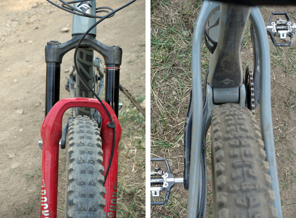 În față e montată o furcă cu cursa de 160 mm și un offset mic (44 mm pentru cele Fox, 42 mm pentru RockShox). Au fost testate și offset-uri mai mari dar au produs instabilitate pe urcări. Offset-ul mic ajută la eliminarea acestui fapt. În spate, chainstay-ul e un pic mai lung, de 435 mm, pentru a mări stabilitatea la viteză.