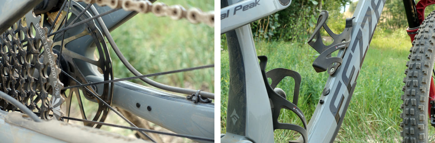 Cablurile sunt rutate afară din downtube în zona superioară a acestuia, chiar în fața seat tube-ului, pentru a le proteja de obiectele contondente de pe trail. Au dispărut astfel cablurile ce atârnă sub monobloc. În plus, astfel e redusă și lungimea cablurilor iar cămășile sunt mai scurte și produc mai puțină frecare. În plus, bicicleta arată mai curat.