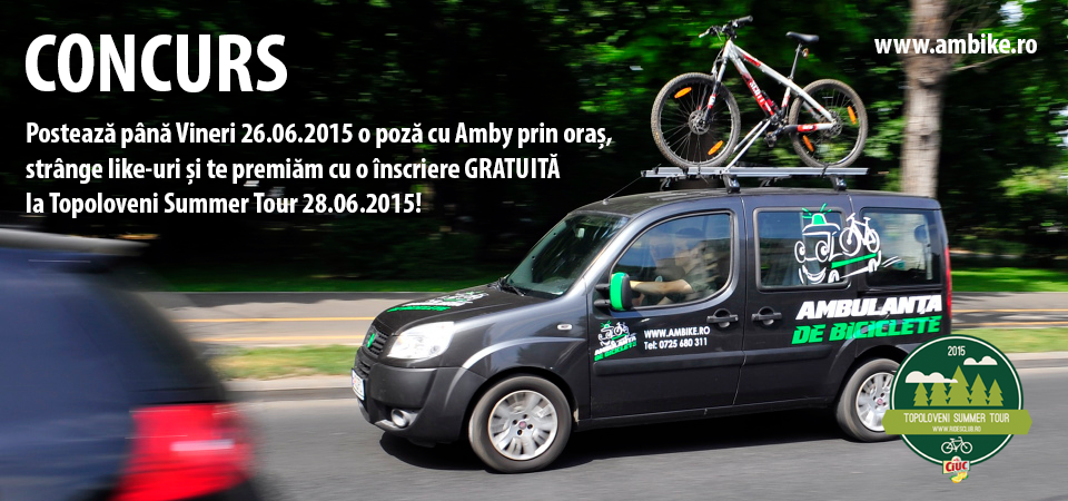 In prezent este activ un concurs pana pe26.06.2015, la ora 12:00, unde trebuie sa postezi pe Facebook o poza facuta de tine cu Ambulanta de Biciclete, strangi like-uri si poti castiga 1 inscriere gratuita la Topoloveni Summer Tour de pe 28.06.2015.