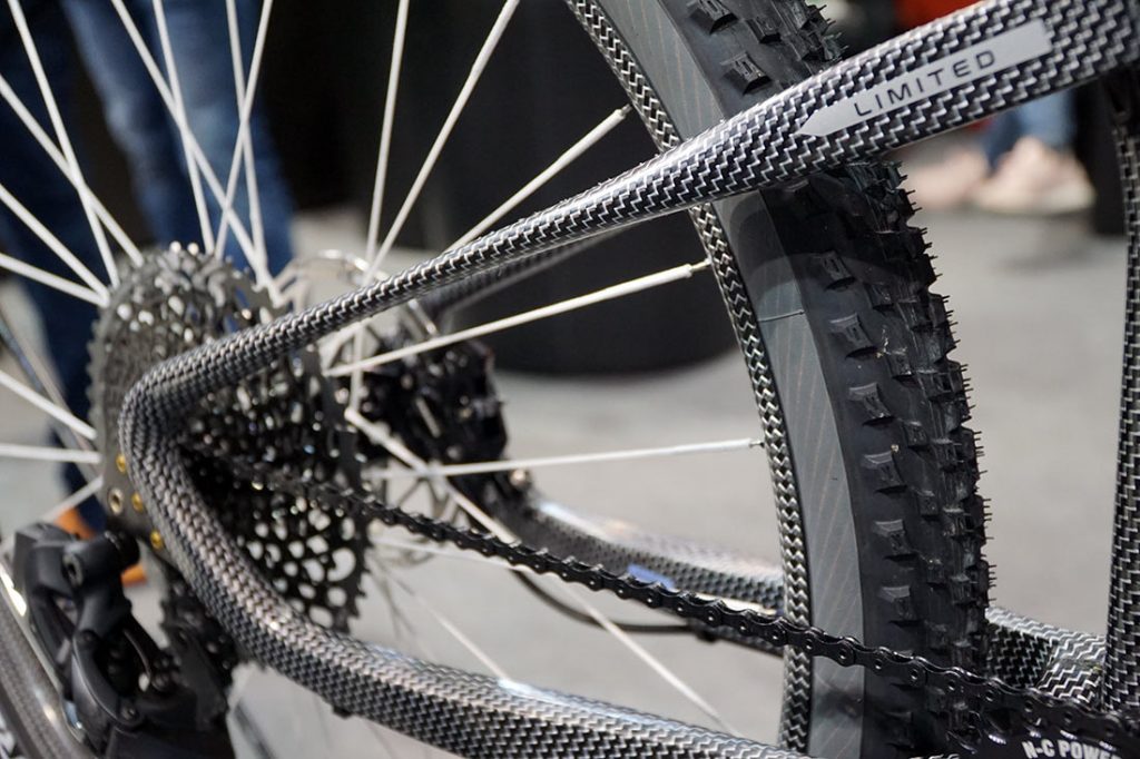 FRM sunt cunoscuți pentru componentele lor foarte ușoare, iar acum oferă un cadru de 4900$ construit din Dyneema și carbon, tratat doar cu un strat subțire de lac. Rezultatul este o bicicletă full suspension uimitoare, completată cu componente tot din carbon cu Dyneema și cu multe alte piese alese pentru ca greutatea să scadă sub 10 kg. Cadrul are o greutate de sub 2 kg cu amortizorul inclus!