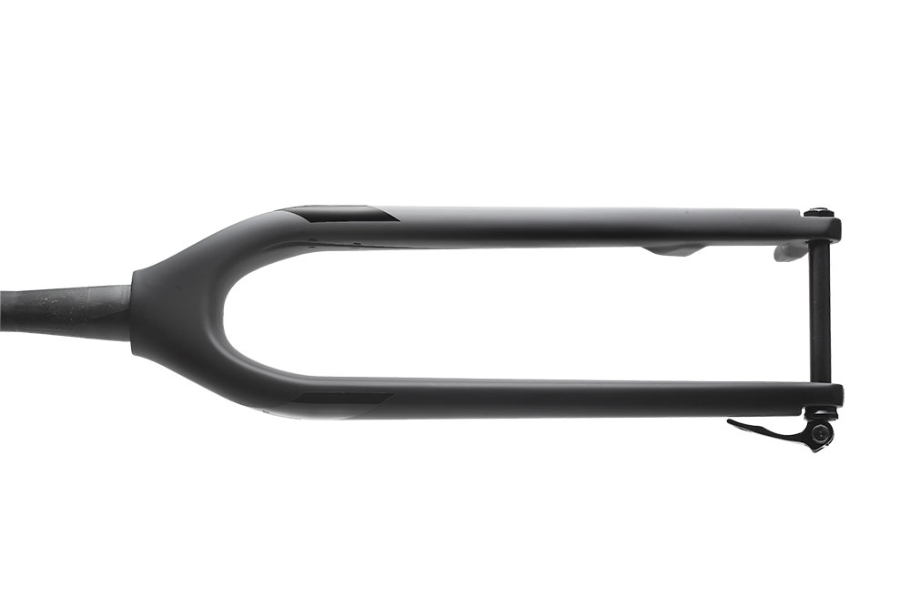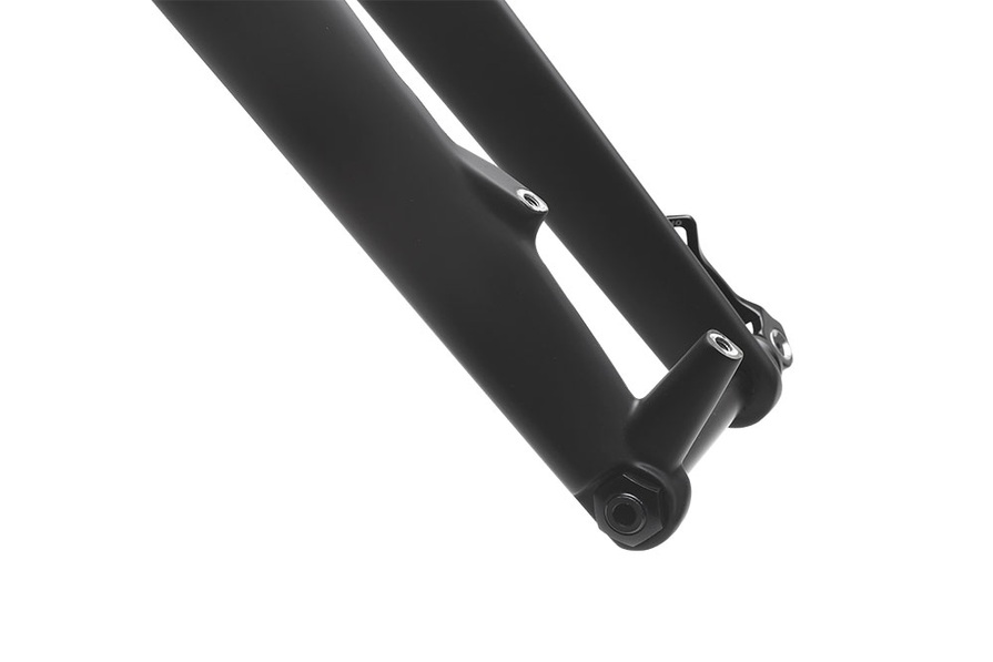 O altă parte bună este lipsa totală a service-ului, care este mai mult decât clar, că în cazul unei furci fixe nu este necesar. Steerer-ul lui Rigid Team este construit din carbon și este conic, iar prinderea etrierului de tip Post Mount poate găzdui un disc de 180mm. Un alt avantaj este reprezentat de clearance, care oferă mai mult de 80mm pentru spațiul dedicat anvelopei, adică poți rula chiar și cu formatul 29×2.5 inch fără probleme.
