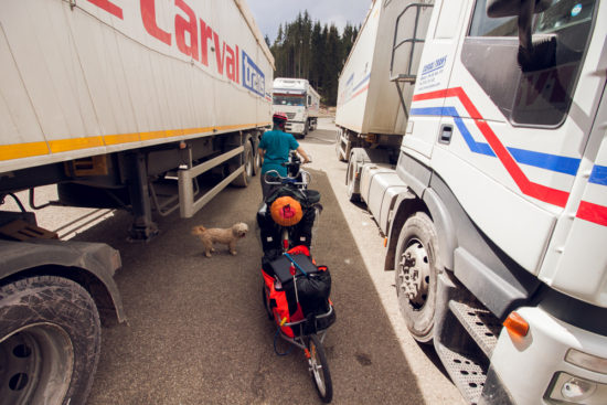 Pentru cei care vor să călătorească împreună cu cățelul lor, vă putem spune că nu e atât de complicat precum pare. Tic a fost cel mai bun tovarăș de drum. Noi avem noroc că e mic și l-am putut pune în coșul din față, unde e și obișnuit să stea. Zi de zi a stat cuminte și cinci ore la rând. L-a plouat, i-a fost frig, am uitat să-i dăm apă, i-a fost somn și i-a fost foame. Dar în 90% din timp a fost cel mai fericit cățel din lume pentru că trăia mereu… în natură.