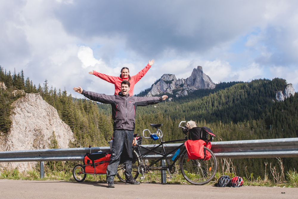 E deja o lună de când ne-am întors acasă din călătoria cu tandemul prin România. Am mers cu un Schauff St. Petersburg vechi, l-am cumpărat din Germania, unde locuim acum, l-am trimis cu autobuzul în Fălticeni, iar pe 5 mai am pornit în cea mai mare aventură a noastră de până acum. 33 de zile pe drum. Cu un cățel în coș și o căruță după noi. Ne-am propus să ne vizităm țara și să scriem o carte despre ea, o carte care e în lucru si care se va numi ”Trei pe un tandem”. Povestea întreagă o puteți citi pe site-ul nostru www.petandem.ro