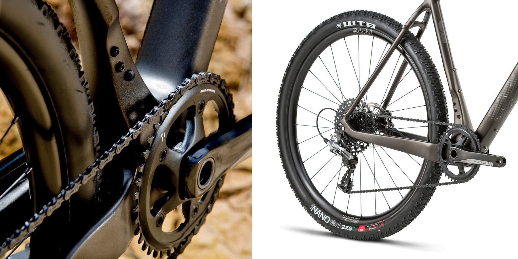 Cât despre bicicletă, noul model din carbon Hook EXT-C are un preț de 3000 Euro și are succesul asigurat de renumele predecesorului său din oțel. Bombtrack încă consideră modelul ca fiind unul de cross-gravel și îl numește o bicicletă 650b deși are anvelope de MTB adevărate WTB Nano 27.5×2.1. Cadrul e proiectat să accepte atât roți 27.5×2.2 cât și 700x52c pentru gravel.