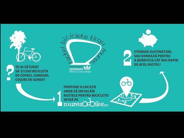 Proiectul MureșOnBike – Parcări pentru biciclete propune instalarea a unui număr de 150 de rastele pentru biciclete într-un număr de 30-50 locații din municipiul Târgu-Mureș.