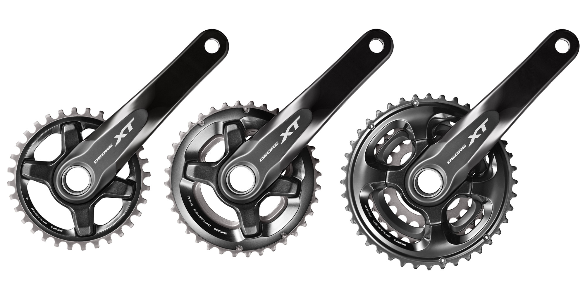 Angrenajele cu una, două sau trei foi sunt gândite pentru diferitele discipline ale mtb-ului de la cross country la enduro şi dispun de aceleaşi 4 şuruburi de instalare ca la XTR. Angrenajele cu o singură foaie de 30 sau 34 dinţi vor fi disponibile la sfârşitul verii şi vor dispune de acelaşi profil al dinţilor întâlnit la angrenajele XTR 1×11. Angrenajele duble pentru Trail sunt disponibile în variantele 34/24, 36/26 sau 38/28T în timp ce varianta cu trei foi are 40/30/22T.