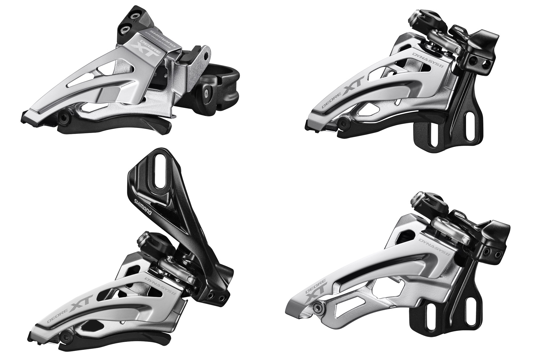 Schimbătoarele faţă şi spate primesc îmbunătăţiri mai mari. XT beneficiază de Side Swing la toate opţiunile direct mount cu două sau trei foi şi se adresează bicicletelor cu suspensii mai mari. Ambele variante, cu patină medie şi lungă, vor fi disponibile doar în varianta cu ambreiaj Shadow RD+. Cei doi scripeţi au fost aduşi la zi şi acum dispun de dinţi mai înalţi pentru schimbări mai bune de viteze şi funcţionare mai bună atunci când lanţul este încrucişat. Ghidajul cablurilor este îmbunătăţit la toate schimbătoarele şi la fel şi geometria pivoţilor. Shimano spune că aceste modificări vor micşora efortul făcut de deget la schimbarea vitezelor.
